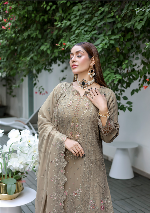 Taupe Georgette Embroidered Straight Suit